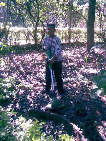 Kinder waren hier und haben etwa 2 Stunden gewörkelt und sich bisschen Taschengeld verdient ein Foto von Uli zeigt dass er mit Schutzbrille arbeitet ... Alles was mit Motor läuft macht ihm besonders spass.