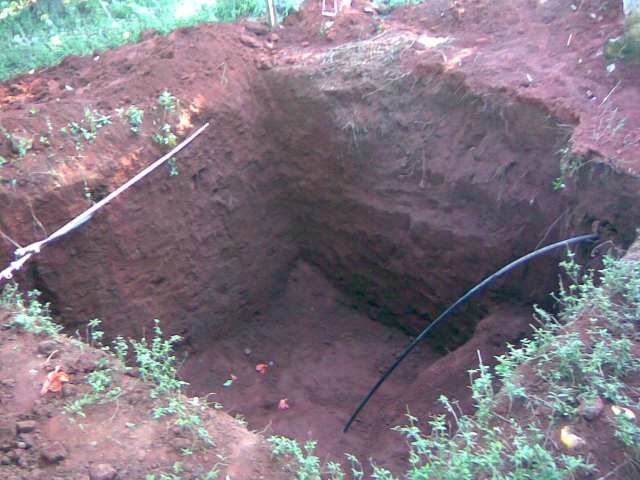 Heute war es sehr schön und angenehm warm bei 25 Grad in der Nacht war es 10 Grad. Heute habe ich beim Aushub mitgeholfen und 2-3 m3 Erde mit der Schubkarre verteilt am Mittag war ich so geschafft dass ich gar nicht essen mochte. Die Klärgrube ist nun fast 3x3x2.5m unten ist fast nur noch Sandstein
